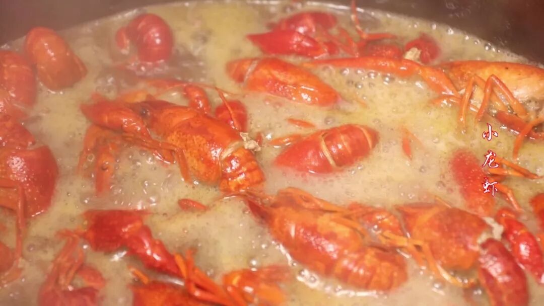 用水冲掉多余的油分 再将虾放在秘制中草药料包调制的汤中熬煮。葱、姜、辣椒、花椒,秘制调料炒香 ,放入煮熟的小龙虾,加入虾汤,满屋飘香。