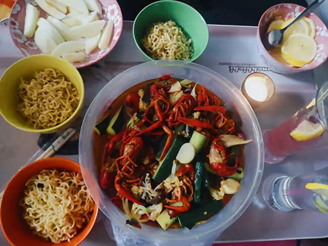 特色龙虾汤汁可以拌泡面,鲜美无比。再配上自制鸡尾酒,烛光晚餐搞定,完美!