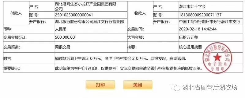 2月18日,湖北潜网生态小龙虾产业园集团有限公司将1000个护目镜送到后湖卫生院,30万元疫情防控定向捐款也通过红十字会转到了后湖卫生院。