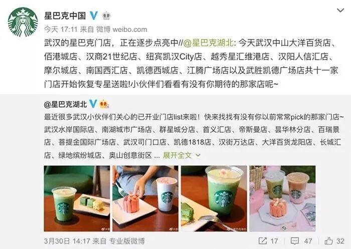 根据“星巴克湖北”官方微博29日发布武汉复业门店名单显示,当地已有22家门店重新开业,而首批复工的5家店更是在3月16日就已经重新开张了。