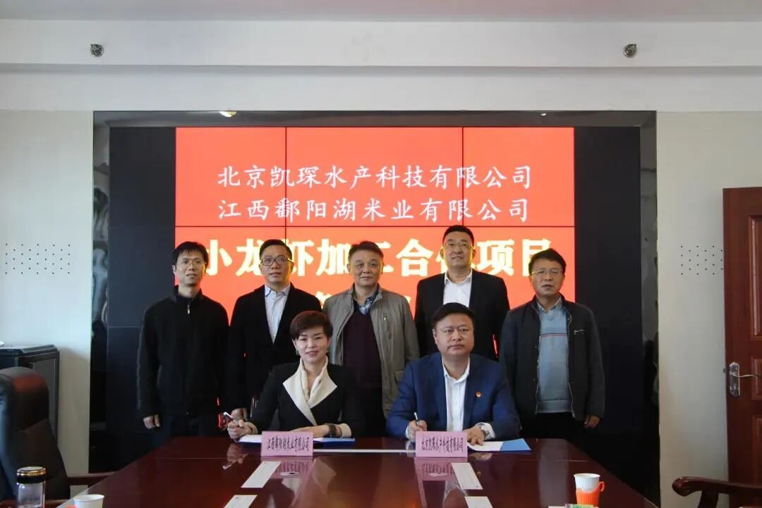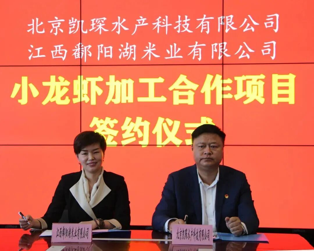北京凯琛水产有限公司以打造小龙虾、大闸蟹等为主体的鲜活产业链为主,早在2018年12月6日就与江西彭泽县政府签署打造了江西(彭泽)特色水产高科技产业园项目,成为九江市彭泽县三级政府重点支持的水产全产业链项目。江西鄱阳湖米业有限公司则是国家级农业产业化龙头企业,位于中国第一大淡水湖鄱阳湖东岸的鄱阳县,是一家集水稻种植;大米加工、销售;预包装食品兼散装食品批发零售;粮食收购、销售;农业服务;为农业生产提供机耕、机收、机种、烘干服务;水产养殖;水产品收购及销售;粮油加工及销售等于一体的一二三融合的大型现代化农业企业。两家大型公司的合作,必将推动江西省小龙虾产业的大力发展。