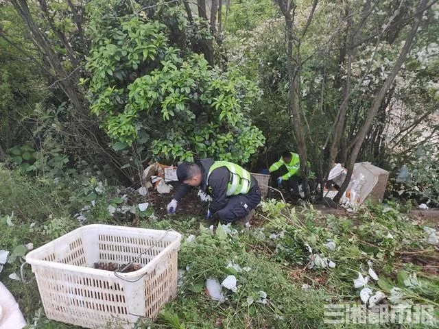 路政员们在事故现场摆放起安全锥桶,联系救援车对侧翻货车进行救援后,也纷纷拿起笼箱开启对小龙虾的“抓捕行动”。顾不上小龙虾又长又硬的钳子,路政队员直接蹲在护坡上上演“徒手抓虾”。40分钟后,现场被清理干净。