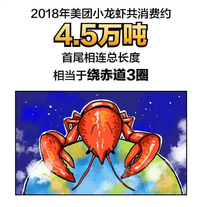 根据某外卖平台做的统计,2018年我国小龙虾的外卖订单金额达到4000亿元,一年消费的小龙虾总共有4.5万吨,首尾相连总长度相当于绕赤道3圈。