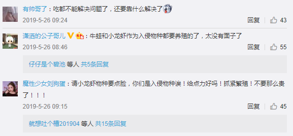 2019年小龙虾登上《云南省外来入侵物种名录》的时候还遭到了广大网友的调侃。中国吃货表示,这简直是对中国人的侮辱,要求帮助云南人解决心腹大患。