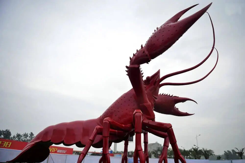▲潜江小龙虾雕塑,高15米、长18米、