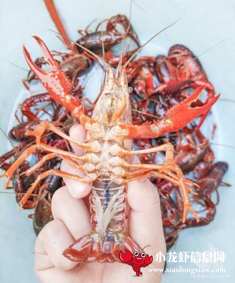 (7)成熟的雄性小龙虾背上有倒刺,倒刺随季节而变化,春夏交配季节倒刺长出,而秋冬季节则消失。雌性小龙虾没有这种倒刺