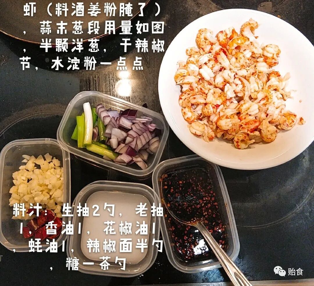 龙虾肉,蒜末葱段用量如图,半颗洋葱,干辣椒节,水淀粉一点点。