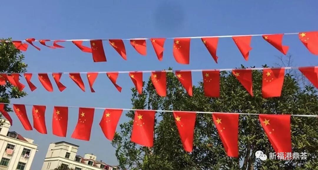 有一种感动,叫“中国红”,有一种骄傲,叫“五星红旗”,有一种深情,叫“我爱中国”。项目的周围都悬挂了红色的小红旗及装饰画,营造国庆喜庆的氛围。红旗风中飘扬,国家繁荣富强。