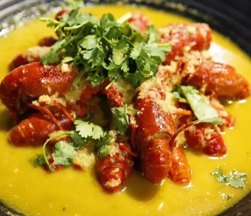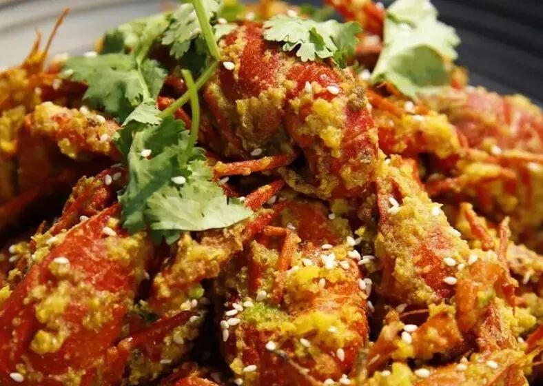 浓郁的蛋黄包裹着小龙虾,